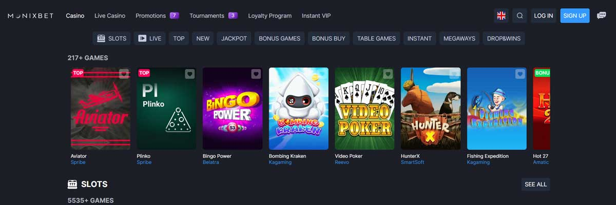 Monixbet.nl is een betrouwbaar cryptocurrency casino met snelle terugbetalingen. De videogamelobby neemt de hele startpagina in beslag. Dankzij het zoeksysteem kun je snel het spel van je interesse vinden.